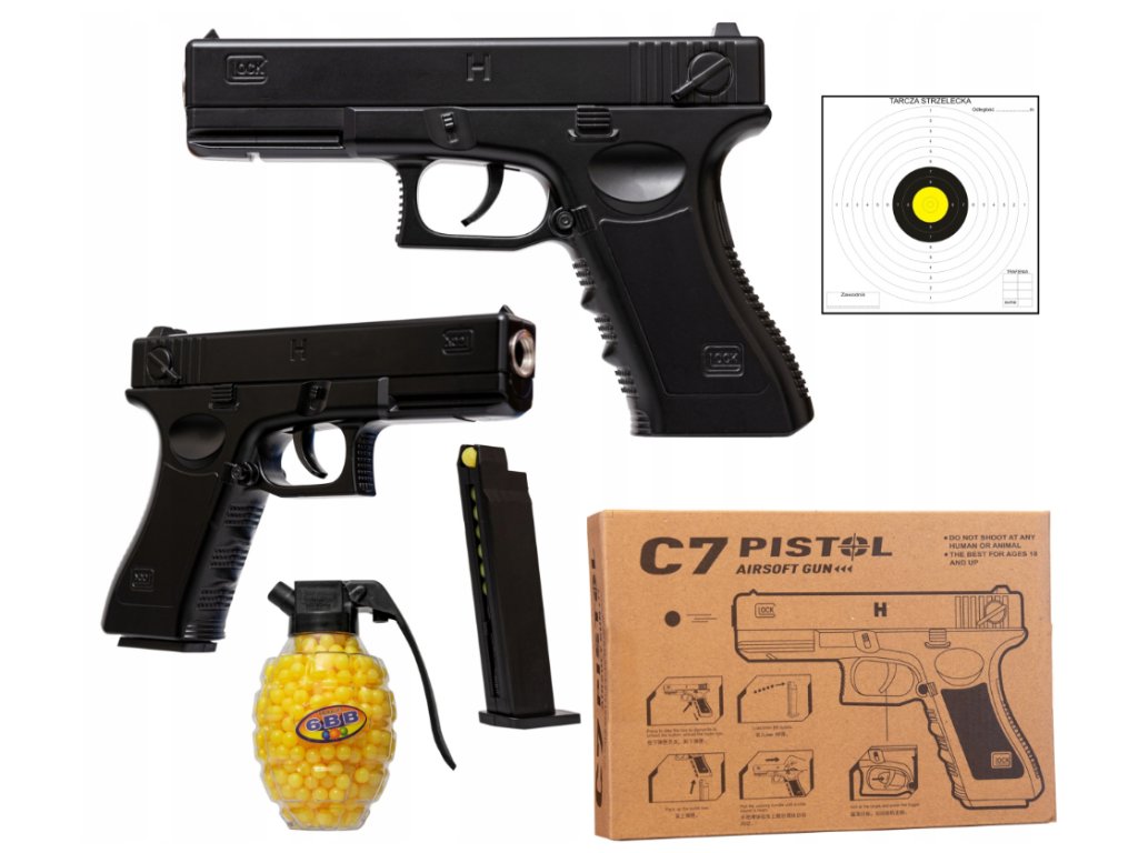 Kovová BB pištoľ glock C7 + guličky