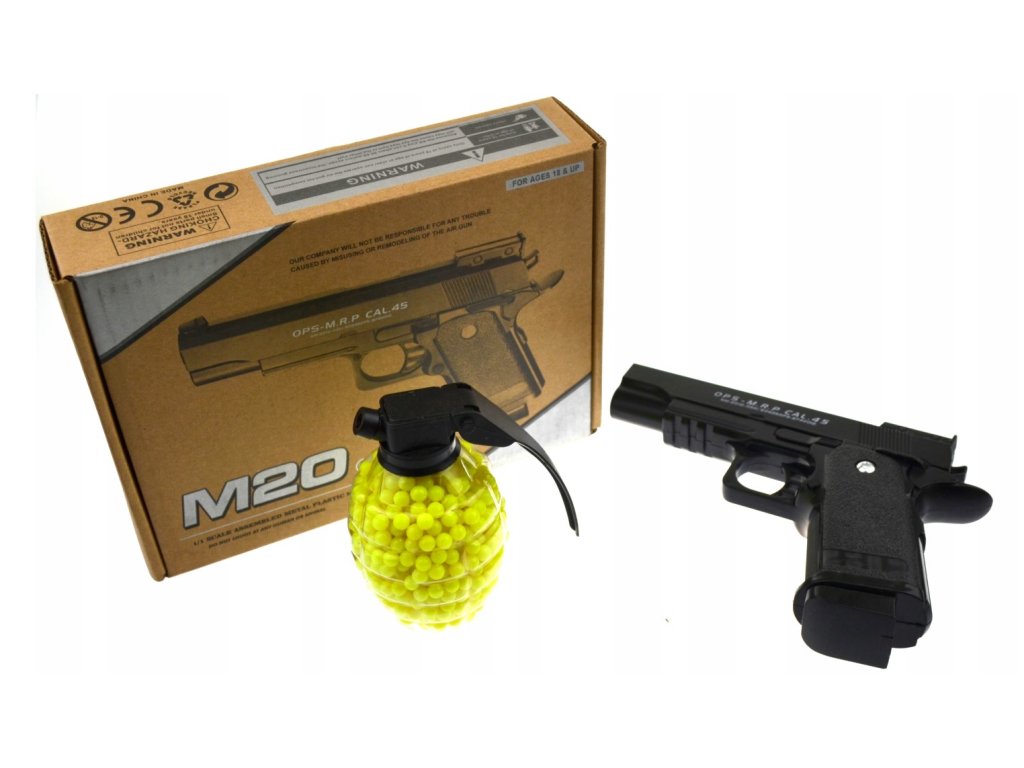 Kovová plastová BB pištoľ + granát
