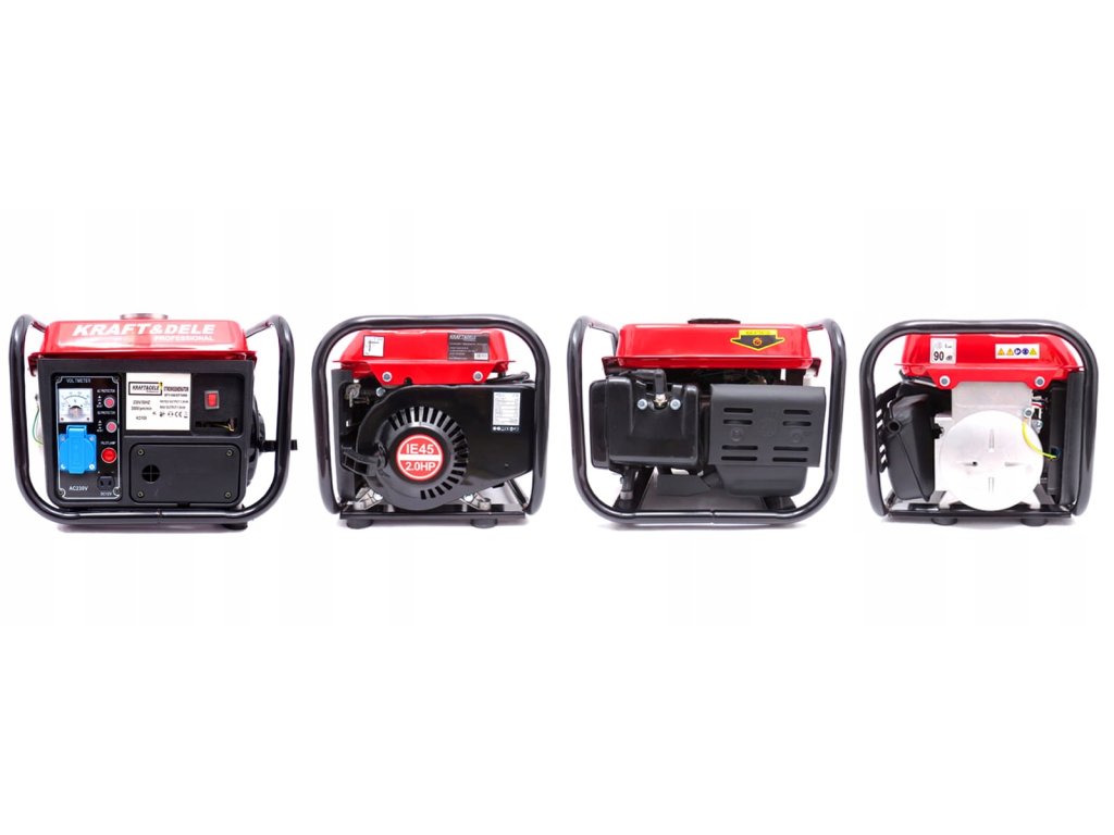 Prenosný jednofázový generátor energie Kraft & Dele je navrhnutý tak, aby generoval striedavý prúd 220 V-230 V pomocou 2-taktného japonského 2-taktného spaľovacieho motora OHV s výkonom 2 HP a maximálnym výkonom generátora 1 500 W.