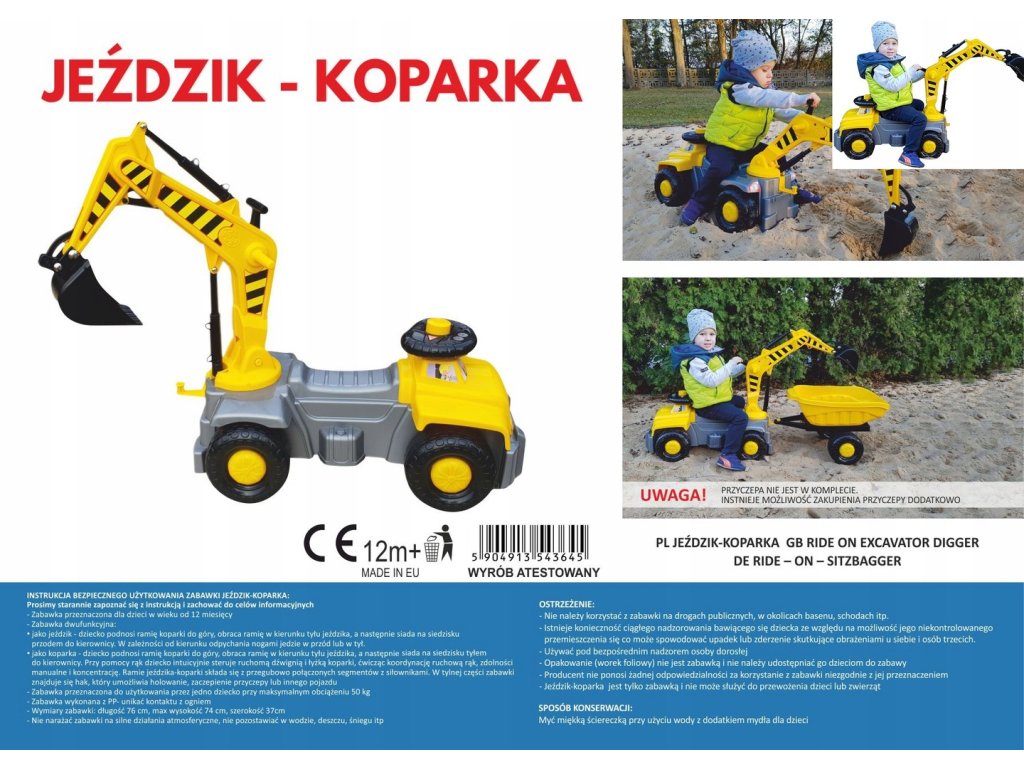 ZABAWKA DWUFUNKCYJNA : KOPARKA I JEŹDZIK W JEDNYM !