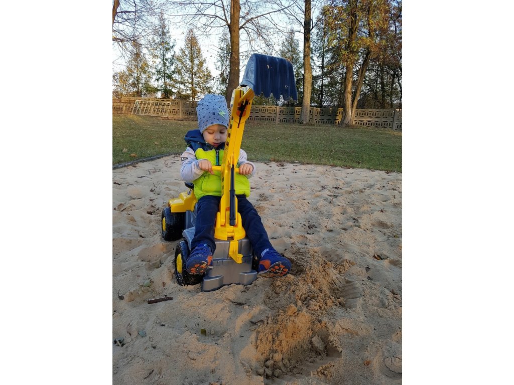DZIECKO MOŻE STEROWAĆ RUCHOMĄ ŁYŻKĄ KOPARKI, OBRACAĆ JĄ NAWET O 360 STOPNI, ORAZ PORUSZAĆ CAŁYM ZESTAWEM DO PRZODU I DO TYŁU ODPYCHAJĄC SIĘ NOGAMI !