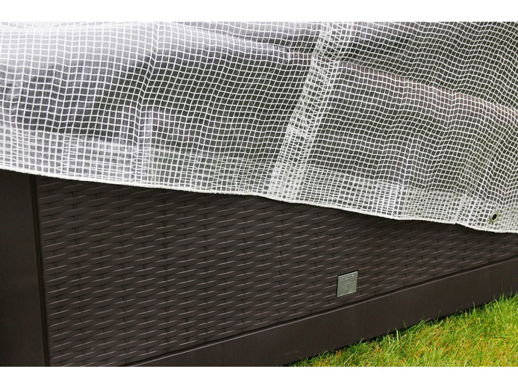 Produkt został wykonany z wysokiej jakości polietylenu, jest obustronnie laminowany oraz zbrojony na całej powierzchni. Plandeka posiada wzmacniane brzegi oraz narożniki dodatkowo zabezpieczone gumą. Metalowe oczka montażowe są rozmieszczone co 100cm.