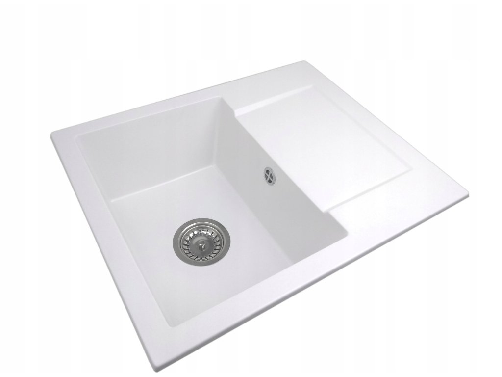 Kuchynský drez s jednou misou z bielej žuly