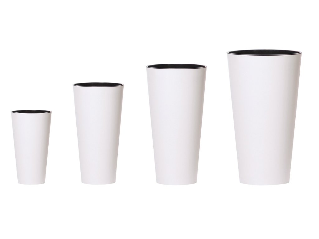 Kvetináč na terasu - Sada 4 lesklých, bielych hrncov TUBUS SLIM