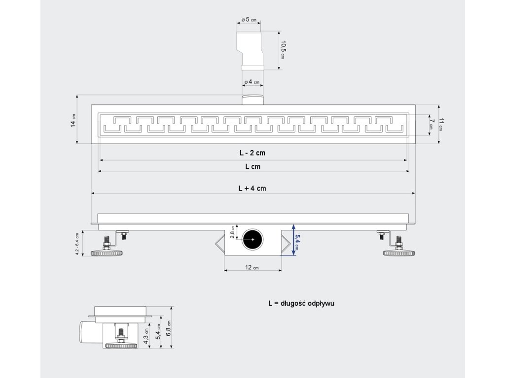 • nóżki stalowe poziomowane do prawidłowego ustawienia odpływu
