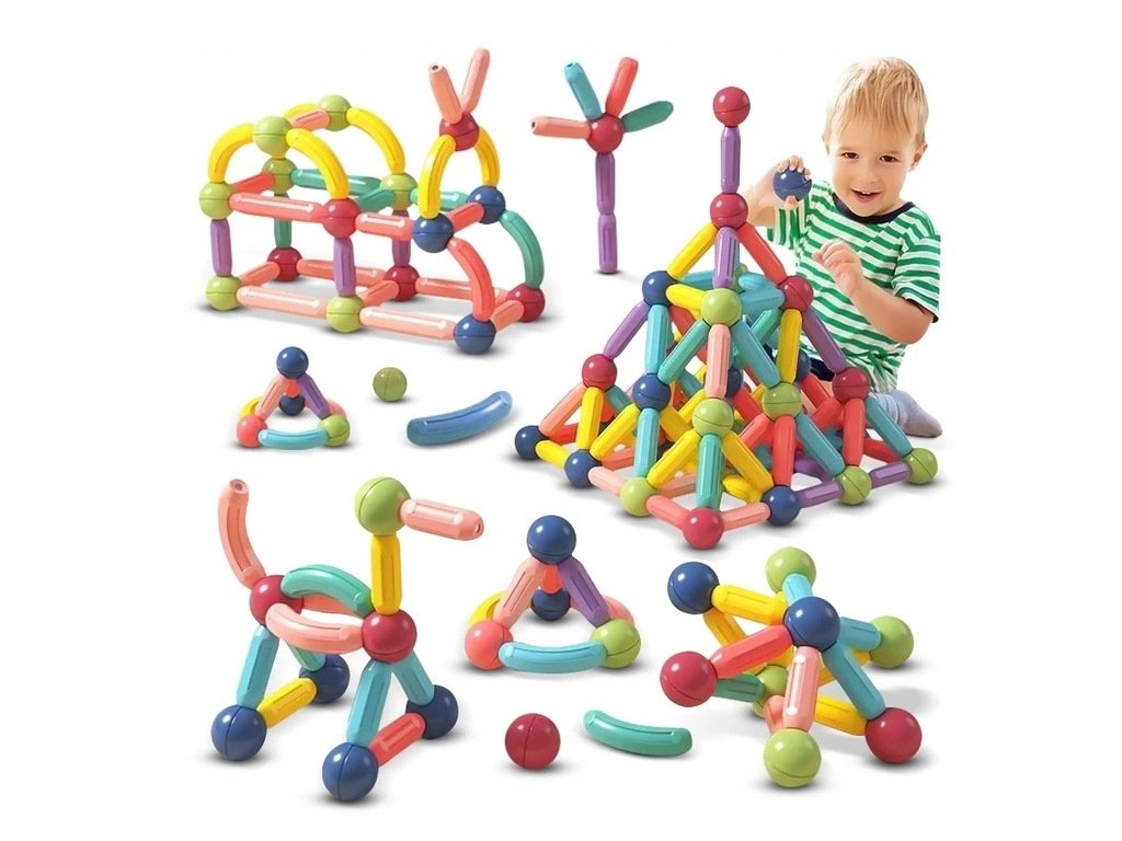 Súprava magnetických blokov pre malých staviteľov. Kocky majú veľmi silné magnety, ktoré držia štruktúry vytvorené deťmi.