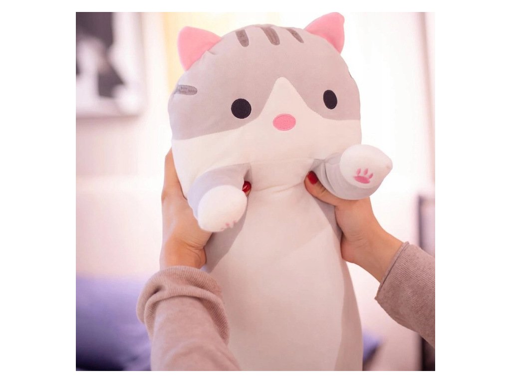 Dlhého mačacieho maskota možno využiť nielen ako obľúbeného plyšáka, ale aj ako mäkký vankúšik. Roztomilý vankúšik je ideálny do spálne alebo detskej postieľky.