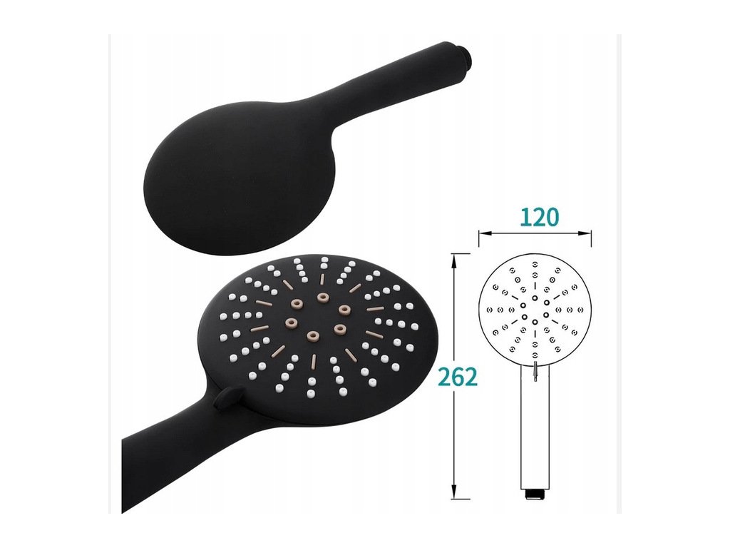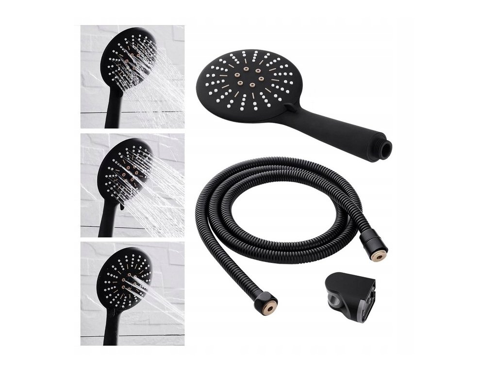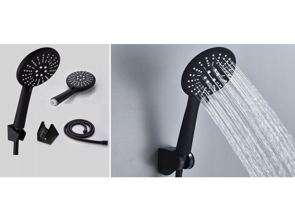 Matná čierna sprchová hlavica s držiakom hadice