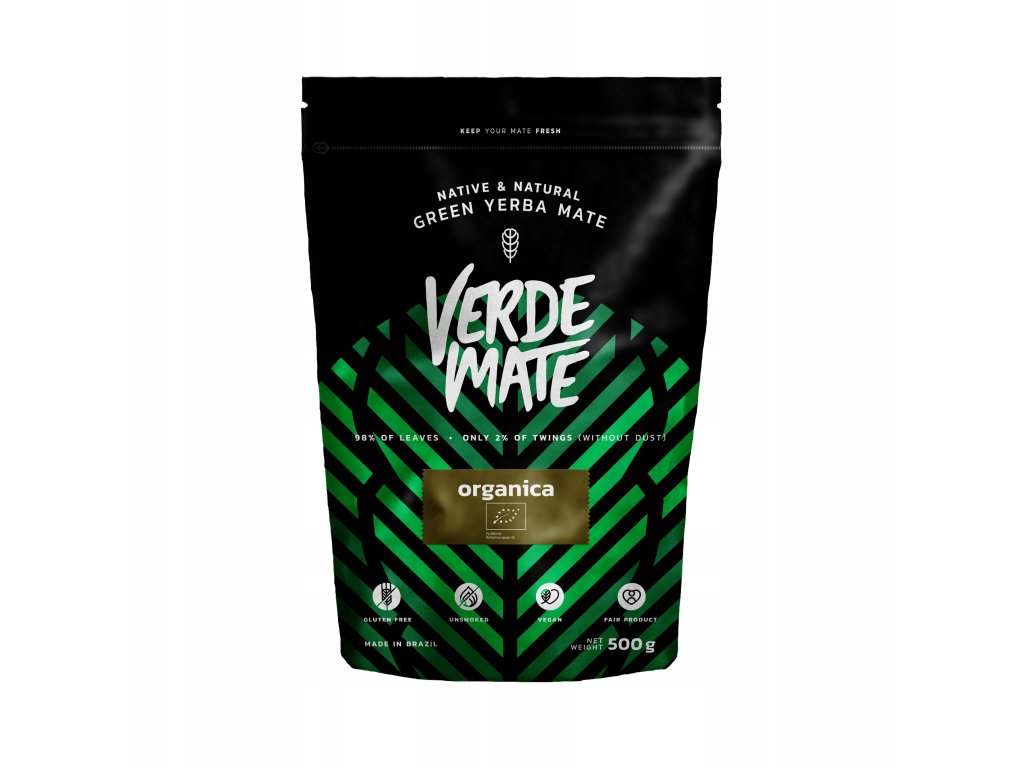 Verde Mate Organica to pierwsza organiczna yerba mate z rodziny brazylijskich Verde Mate Green. Produkt powstaje zgodnie z zasadami przyświecającymi rolnictwu ekologicznemu. Kupując organiczną yerba mate mamy pewność, że pochodzi ona z certyfikowanej plantacji wspierającej ideę zrównoważonego rozwoju, a jakość, naturalne pochodzenie i skład produktu podlegają ścisłej kontroli zewnętrznych organów.