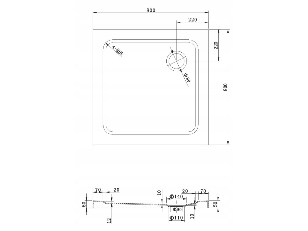 Slim brodzik kwadratowy 80x80 cm + syfon