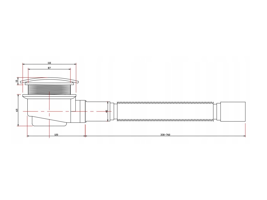 • średnica odpływu: 90 mm