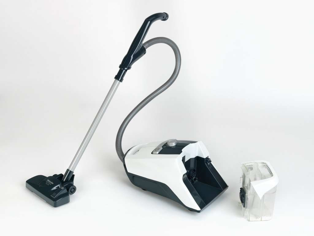 Odkurzacz ten jest w kolorze biało-czarnym. Posiada szarą elastyczną rurę, wygodną rączkę oraz rurę z końcówką do sprzątania. Ta kolorystyka w połączeniu z precyzyjne wykonanymi elementami sprawia wrażenie bardzo solidnego sprzętu, przez co odkurzacz wygląda jak prawdziwy. Odkurzacz Miele został wyposażony w: