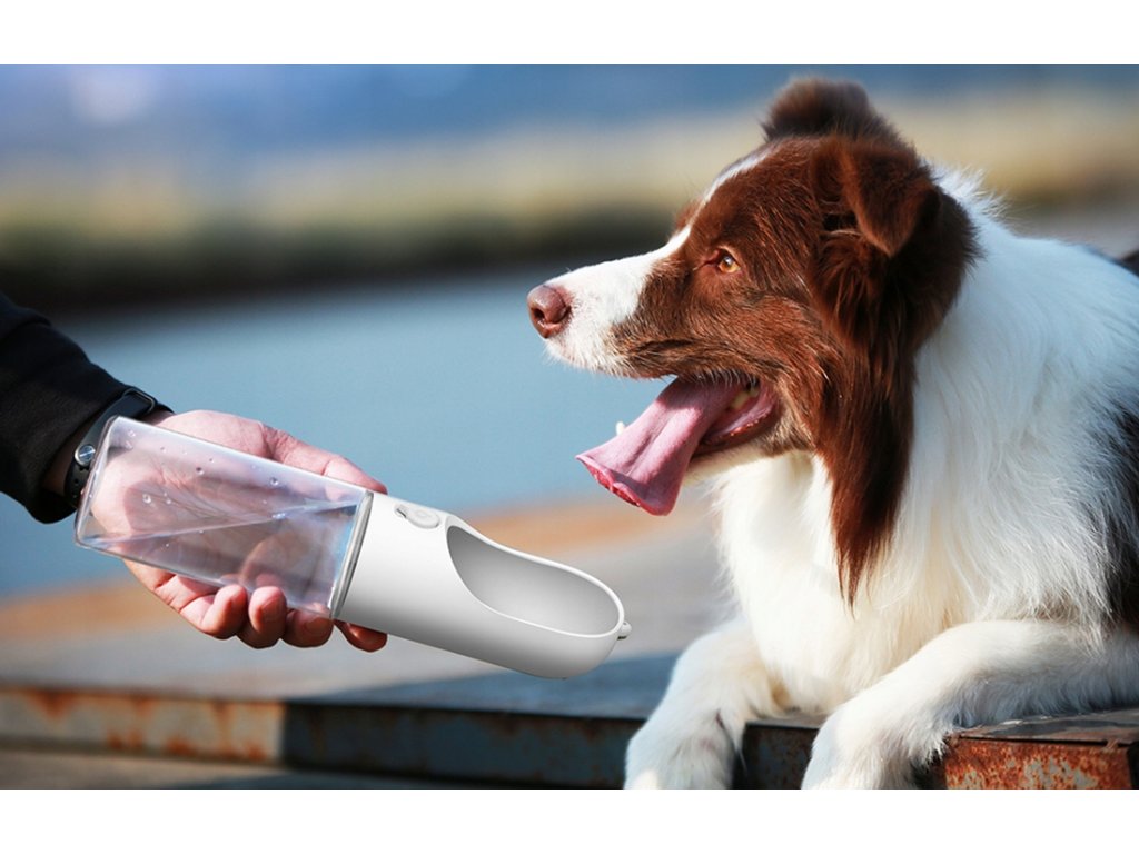 Przenośna butelka na wodę marki PetKit to niezastąpione akcesorium dla każdego właściciela psa. Doskonale sprawdza się w podróży lub na spacerze. Obsłużysz ją jedną ręką za pomocą intuicyjnego przycisku, a dzięki specjalnie zaprojektowanej, wbudowanej misce Twój pies wygodnie się napije. Wykonana została z bezpiecznych dla zdrowia, antybakteryjnych materiałów. Pojemność 400 ml pozwoli zaspokoić potrzeby twoich zwierząt