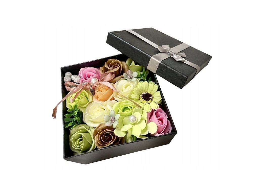 Mydlové kvety v darčekovej krabičke 15x15x8,5 cm VYPR