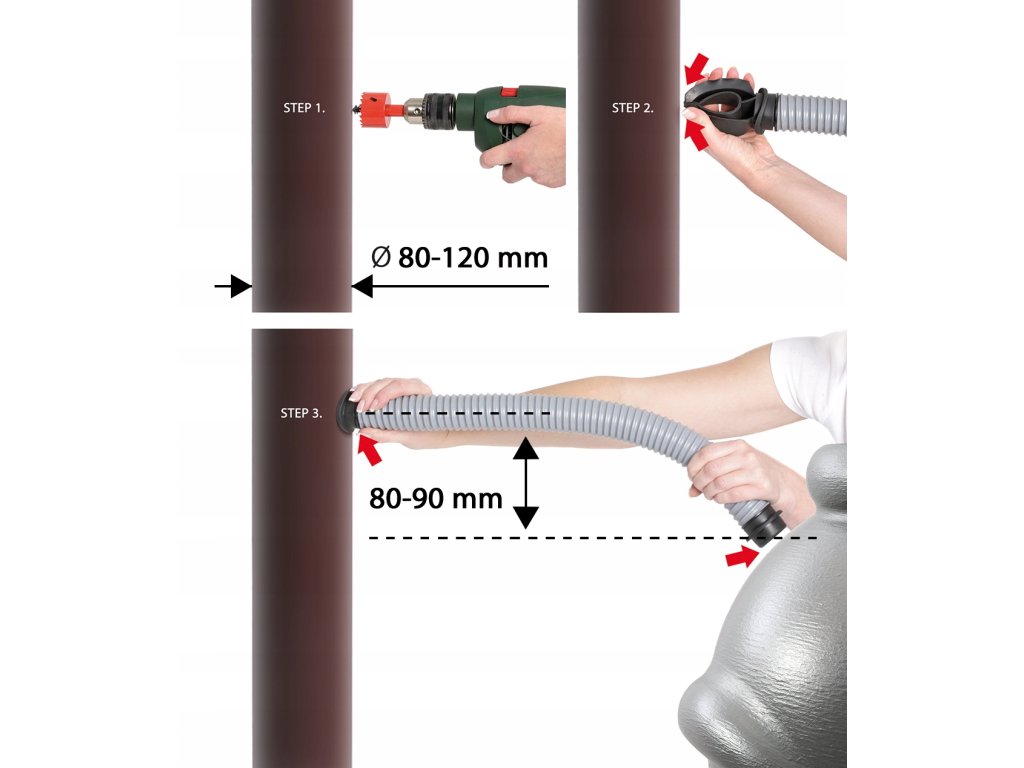 • krok 2. Wykonaj otwór w deszczownicy, miejsce otworu powinno być zgodne z wytłoczeniem na bocznej ścianie beczki
