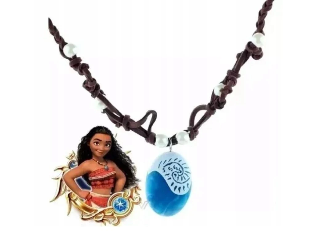 Ikonický náhrdelník s modrým okom, amulet hrdinky princeznej Moany, vyrobený z mäkkej šnúrky, zdobený perličkami, modré oko v tme svieti na zeleno. Perfektný doplnok k vášmu outfitu