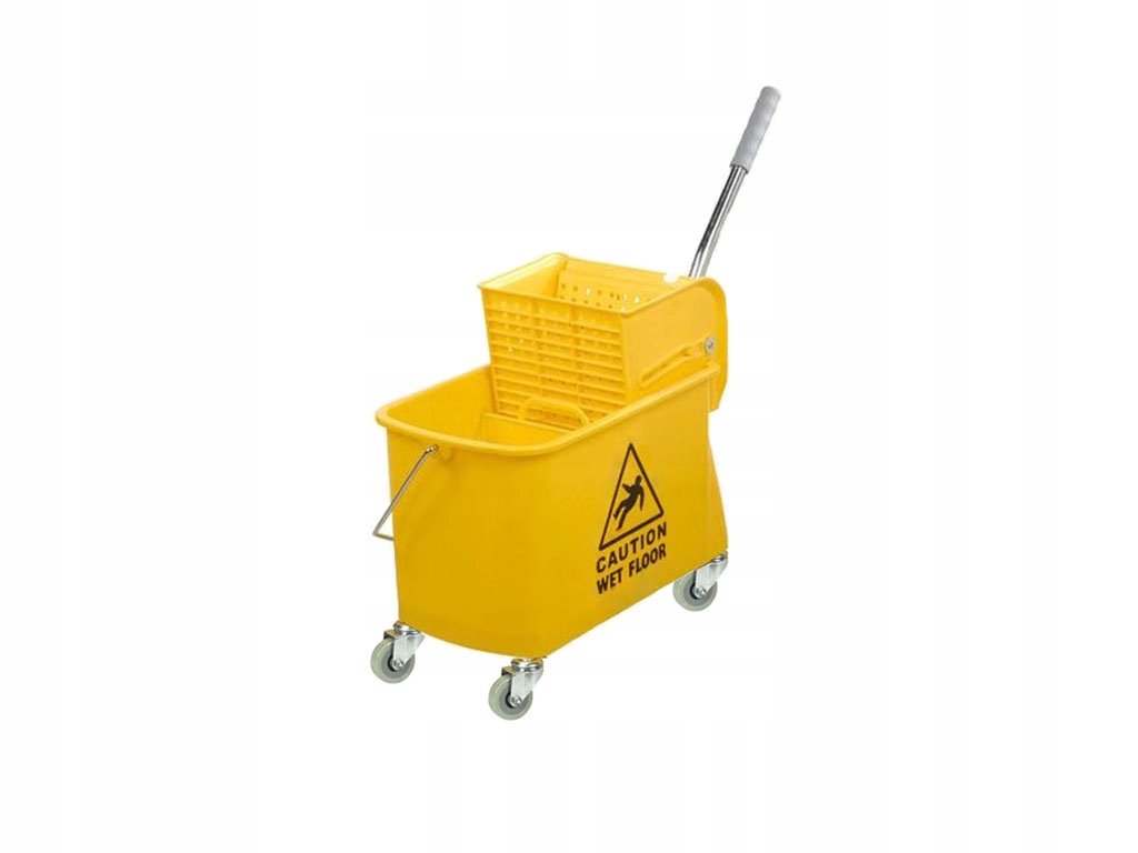 Súprava sa skladá z profesionálneho čistiaceho vozíka a 100 cm priemyselného mopu. Kočík KENTUCKY pozostáva z dvojkomorovej vedra z kvalitného plastu ABS, ktorá sa vyznačuje vysokou odolnosťou proti prasknutiu. Používa čeľusťový lis, vďaka ktorému je proces vyžmýkania ľahký. Táto tlač pracuje s plochými, šnúrkami a kentucky mopmi. Vozík má kolesá, ktoré sú odolné a stabilné a počas jazdy nepoškrabávajú zem. Oceľová rukoväť čeľustného lisu vám umožňuje bezpečne jazdiť s vozíkom. Pri používaní priemyselného mopu odporúčame používať rukavice a proces odšťavovania je poloautomatický. Je to súprava, ktorá nám umožňuje používať ľahký vozík, ktorý sa ľahko prenáša a zároveň má profesionálny priemyselný mop. To všetko nám poskytuje správny komfort práce.