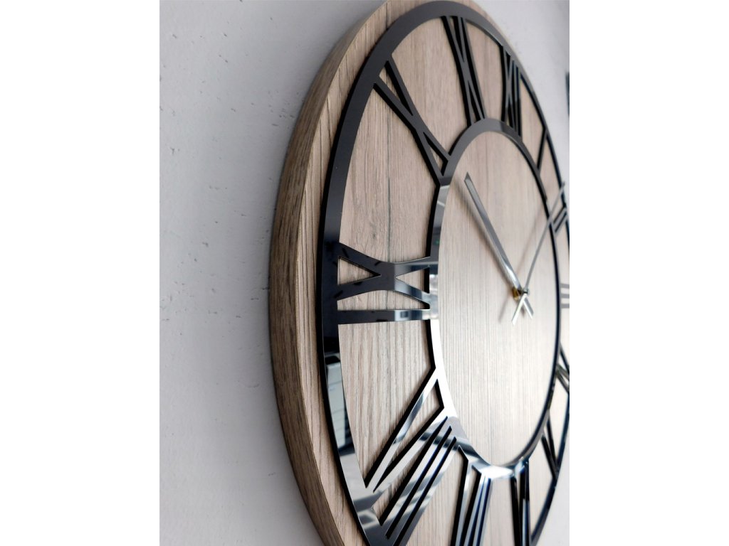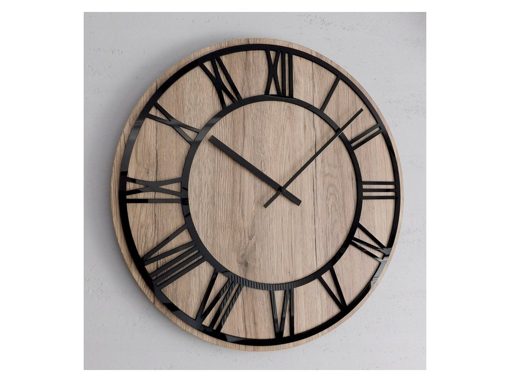 Krásny model - vyrobený z 18 mm drevenej dosky v odtieni san remo s čiernymi rímskymi indexmi.