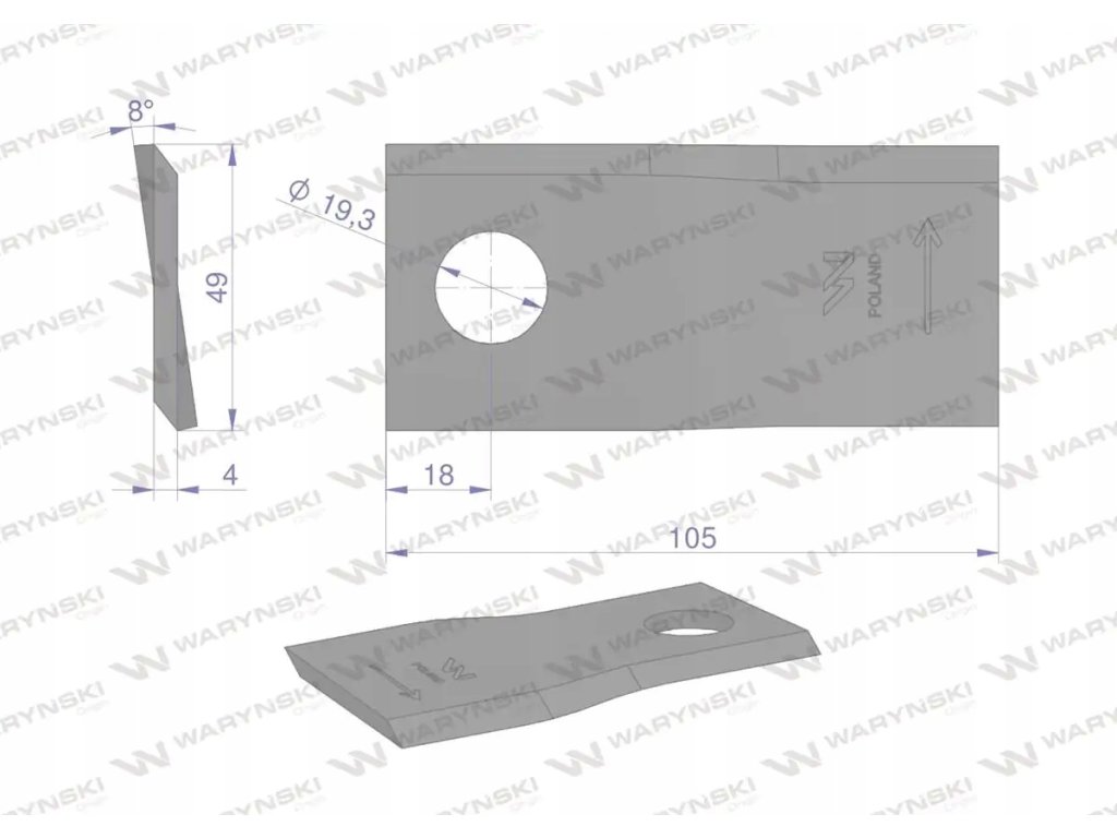 Nôž, žací nôž 105x49x4x19,3 použitie Samasz BRZW (balenie 12xL+12xP) WARYŃSKI (predávané v balení po 24 ks)