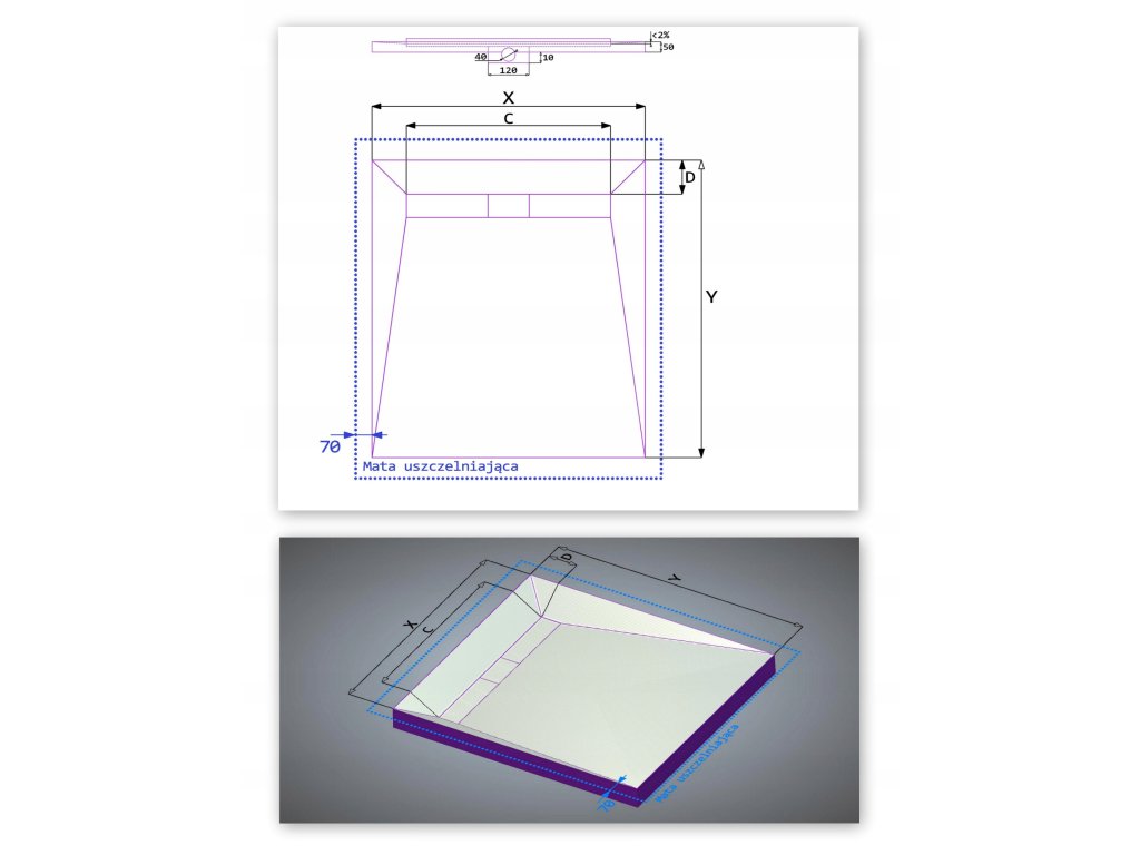 • Mata Hydroizolacyjna pokrywa powierzchnię brodzika podpłytkowego, zabezpiecza przed przedostawaniem się wilgoci oraz zapewnia znakomitą przyczepność kleju do płytek a jej naddatek 70 mm układa się na ścianie oraz podłodze poza strefą prysznicową zapewniając dodatkową szczelność.