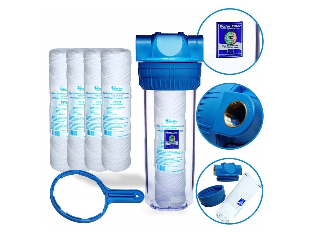 Na ochranu hlavy pred mechanickou kontamináciou tečúcou vo vode sa odporúča nainštalovať 10" rúrkový predfilter s polypropylénovou kazetou. Sada obsahuje telo s prívodom 5 strunových vložiek ZDARMA.
