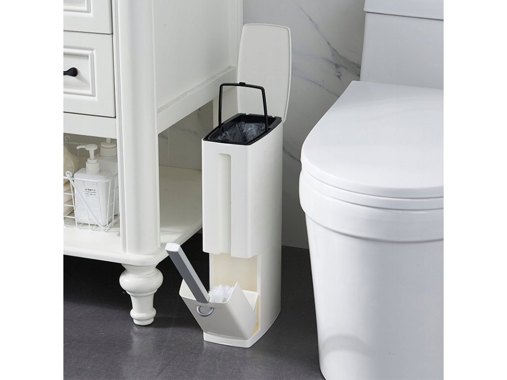 Odpadkový kôš na WC s kefou.Záves na toaletu