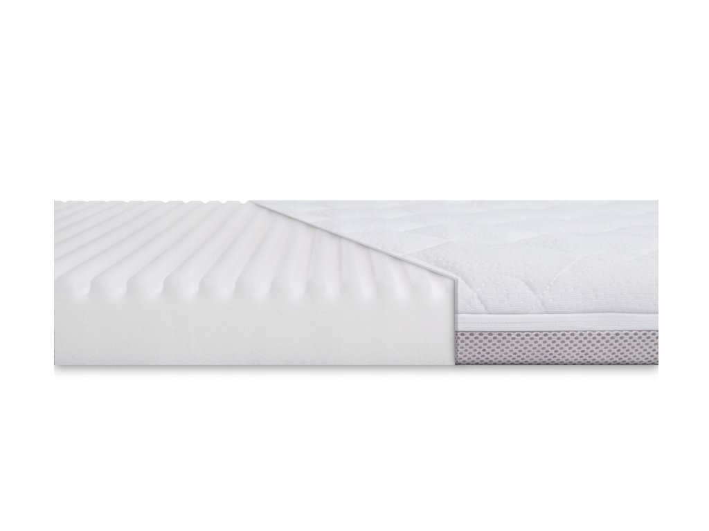 1️⃣ Vlnitý profil vyrezaný do peny na jednej strane matraca zmäkčuje matrac na tvrdosť H2 (stredne pevný) a zlepšuje ventiláciu, čím zabezpečuje menej potu pre užívateľa