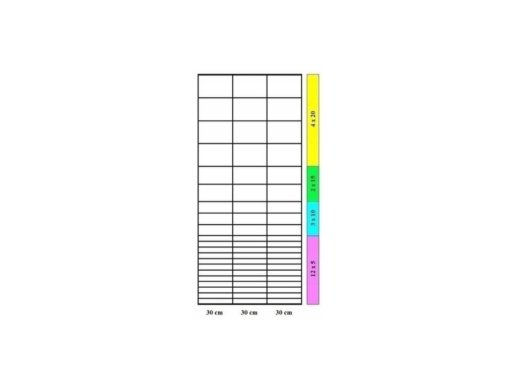 • rozteč vodorovných drôtov: 12 x 5 cm + 3 x 10 cm + 2 x 15 cm + 4 x 20 cm