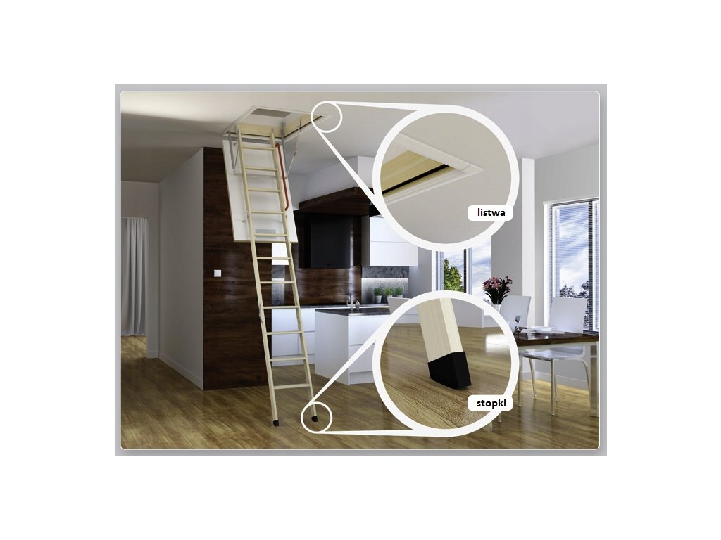 • Komfort użytkowania - Metalowa poręcz podnosi komfort i bezpieczeństwo użytkowania schodów strychowych.
