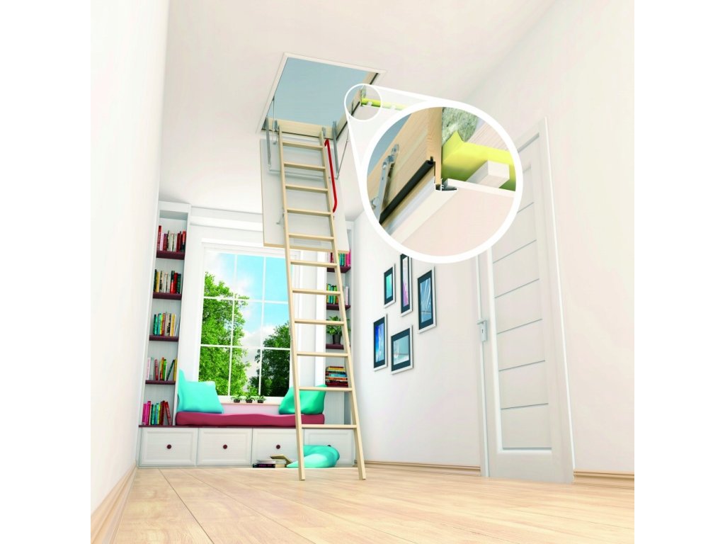 Schody łączą w sobie zalety funkcjonalności, parametrów cieplnych oraz wysokiej trwałości za optymalną cenę. Schody zapewniają możliwość łatwego i bezpiecznego wyjścia na poddasze czy strych, po złożeniu chowają się w stropie, nie zajmując miejsca w pomieszczeniu.