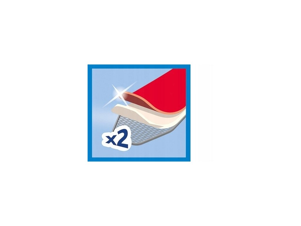 Dvojvrstvový, univerzálny poťah dosky Vileda s vrstvou špongie a peny zvyšujúci komfort žehlenia.