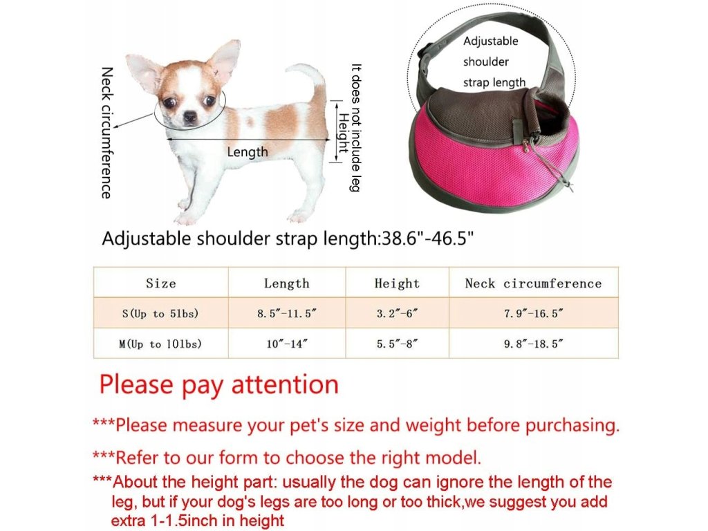Przed zakupem zmierz wagę i rozmiar swojego zwierzaka. Zobacz nasze drugie zdjęcie (metoda pomiaru). Mały (15x3,9x7,8 cala), zalecana maksymalna waga około 5 funtów. Średni (17x5x11 cali), zalecana maksymalna waga około 10 funtów.
