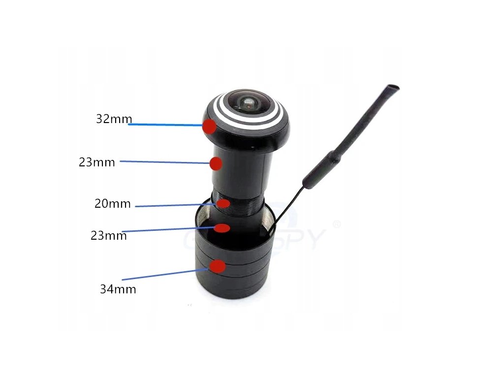 • priemer 32mm, ohnisková vzdialenosť 1,7mm, uhol záberu 180° (tzv. rybie oko)