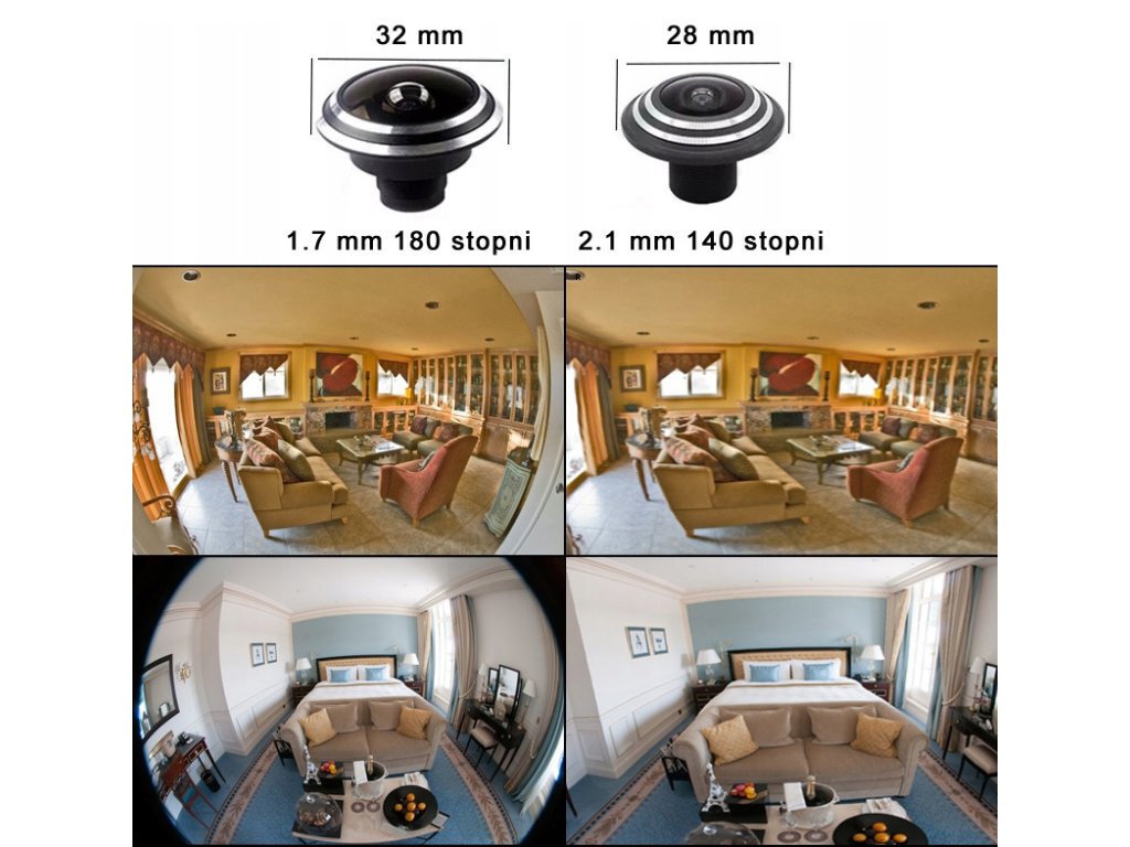 • priemer 28mm, ohnisková vzdialenosť 2.1mm, pozorovací uhol 140°