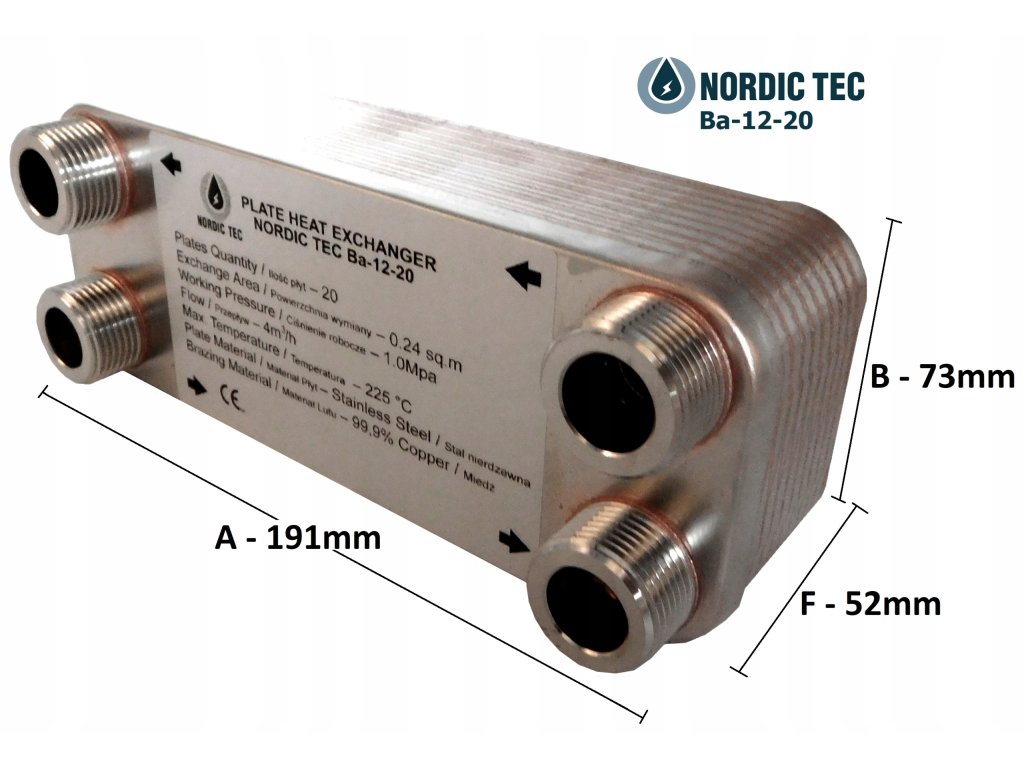 20-doskový výmenník tepla NORDIC Tec 20kW 3/4 '