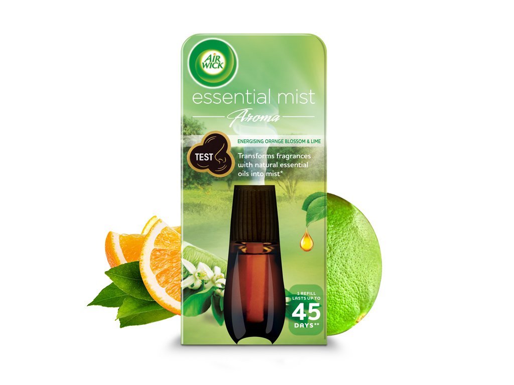 Pocit sily prírodnej energie a prebudenie zmyslov osviežujúcou vôňou šťavnatého limetky a pomaranča. Nový, funkčný produkt transformuje arómu esenciálnymi olejmi na voňavú hmlu, ktorá vznáša vo vzduchu a poskytuje trvalý osviežujúci účinok. Jedna náplň trvá až 45 dní. *