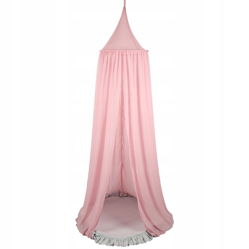 Baldachýn v špinavo ružovej farbe, svetlošedá rohož.