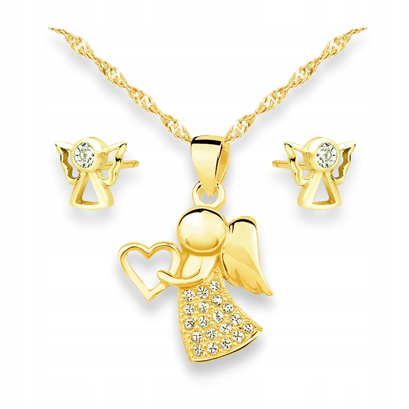 . Nádherný Symbolický strieborný pozlátený náhrdelník s anjelom strážnym a náušnice v Tvar anjelov