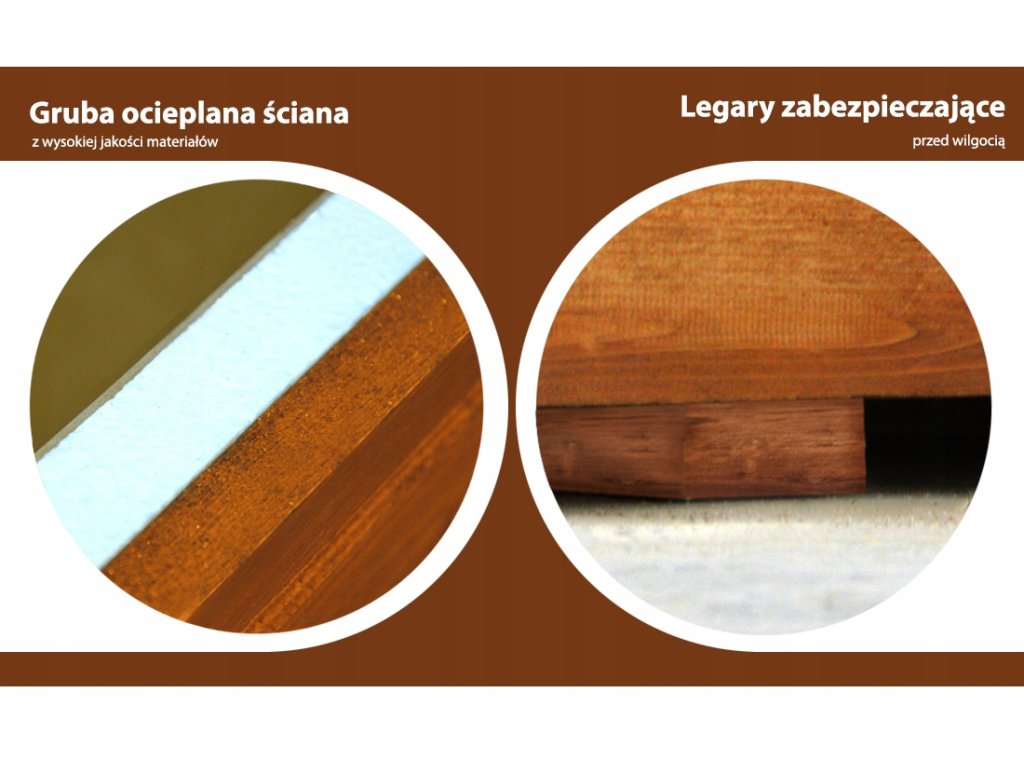 W środku buda ocieplona jest styropianem o grubości 2cm + 3 mm płyta HDF  (ŁĄCZNIE Z DACHEM!)