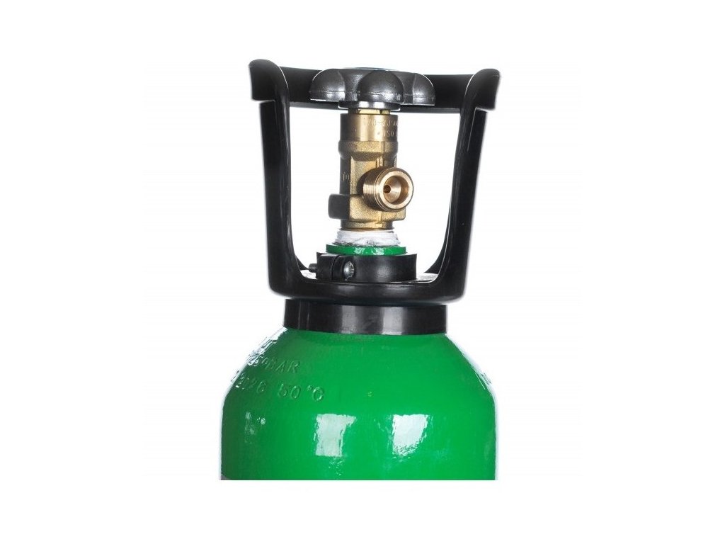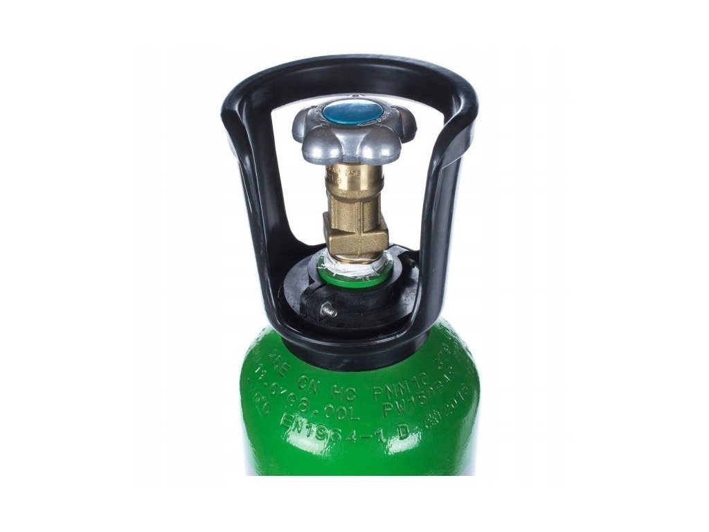 Solidna osłona zaworu zabezpiecza zawór podczas transportu oraz przechowywania dodatkowo ułatwia transport butli. Proszkowe malowanie butli zgodne z normami PN-EN.