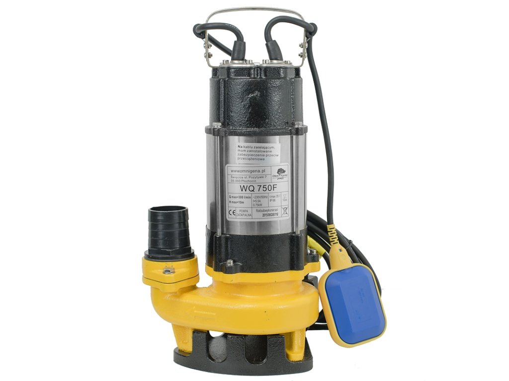 Pompy z rodzaju WQ znajdują zastosowanie w wypompowywaniu wody, ścieków i gnojowicy. Sprawdzają się zarówno podczas usuwania cieczy z zalanych pomieszczeń, jak i zbiorników zewnętrznych. Żeliwno-stalowa konstrukcja jest odporna na korozję, nawet w warunkach kwaśnego środowiska. Pompy tego typu mogą pompować płyny z niewielką ilością miękkich części stałych. Każda z nich posiada również pływak, który wyłączy pompę, gdy skończy się woda lub szambo i włączy ją automatycznie, gdy zbiornik znów się napełni. W modelu WQ 750F zastosowano całkiem ekonomiczny silnik o mocy 750 W, który zapewnia wydajność do 300 litrów na minutę.