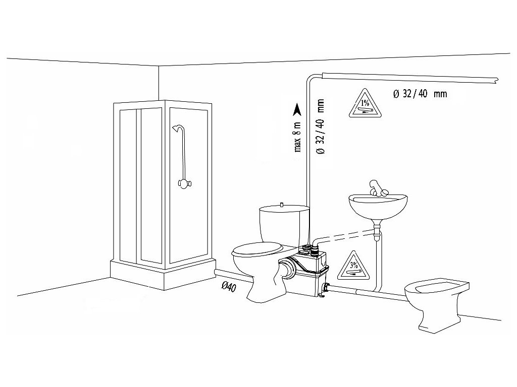• Možnosti pripojenia jedného WC a ineho sanitárneho vybavením (van sprchovací kút, umývadlo atď.) Pri jednom vchod. Vhodné aj na umývačiek riad a práčok.