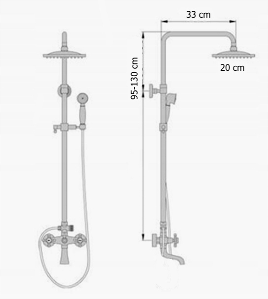 RETRO dažďová sprcha + vaňová batéria staré zlato Ďalšie informácie Sprchový set