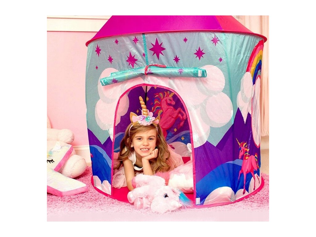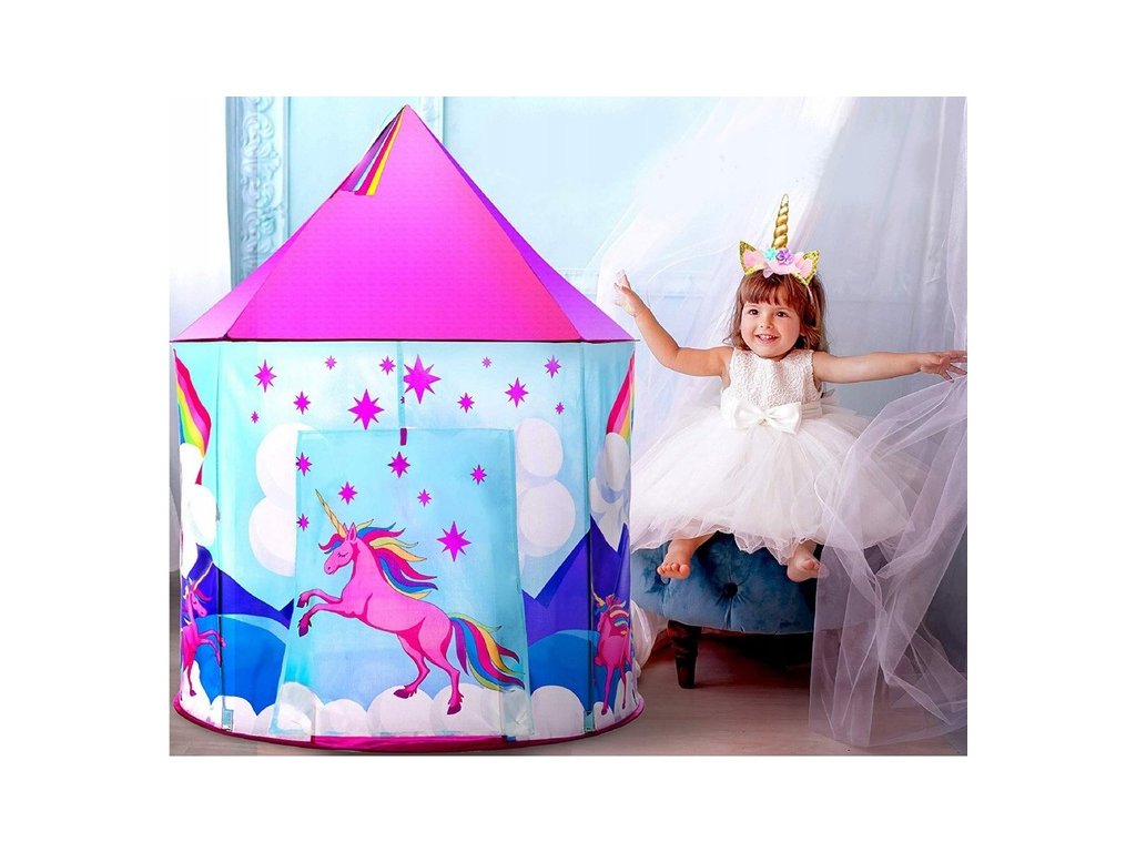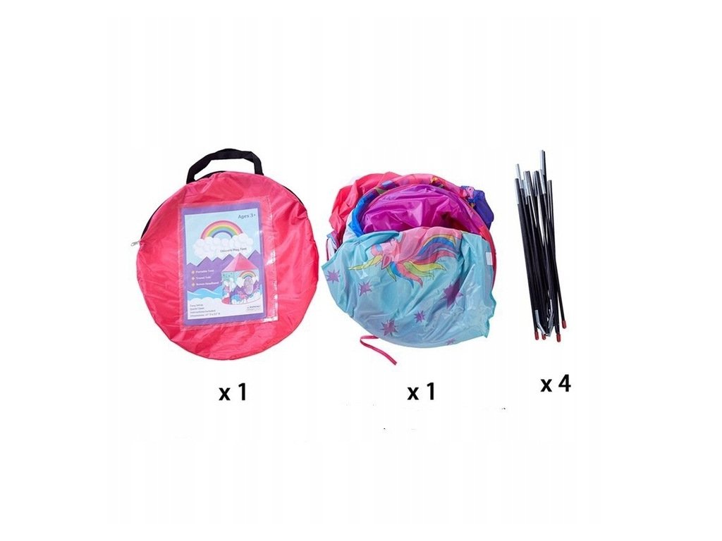 Náš produkt bol prepracovaný do najmenších detailov. Pestrofarebné, očarujúce obrázky - dúha, jednorožce, hviezdy... to všetko vám pomôže cítiť sa ako skutočná princezná v skutočnom zámku! Stan má vchod, ktorý je možné hore uviazať alebo nechať zatvorený.