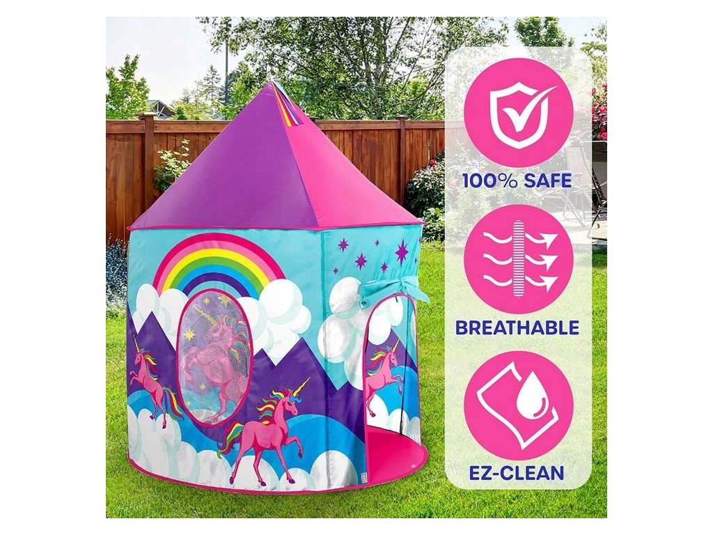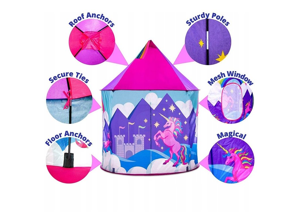 Stan má podobu pôvabného ružového zámku a má sieťované okná, cez ktoré môžete pozorovať, čo sa deje vonku, a poskytujú ochranu pred hmyzom pri hre vonku. Vchod do stanu sa dá jednoducho zakryť závesom.