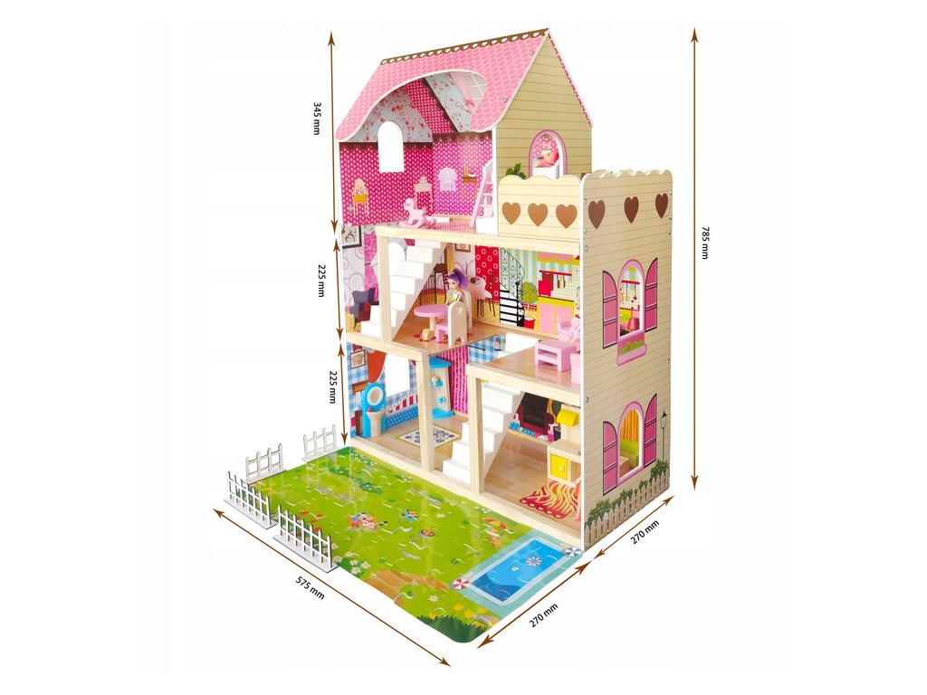 Domček pre bábiky Picollo je vyrobený z prírodného dreva najvyššej kvality. Má veľké rozmery a pevnú povrchovú úpravu.