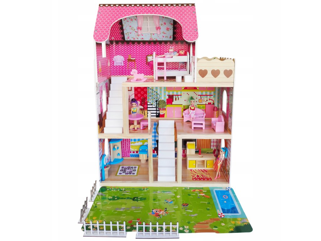 DUZY DREWNIANY DOMEK DLA LALEK MEBLE LALKI LED