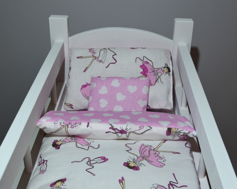 Drevená postieľka pre bábiky - kolíska + BEDDING 4 el