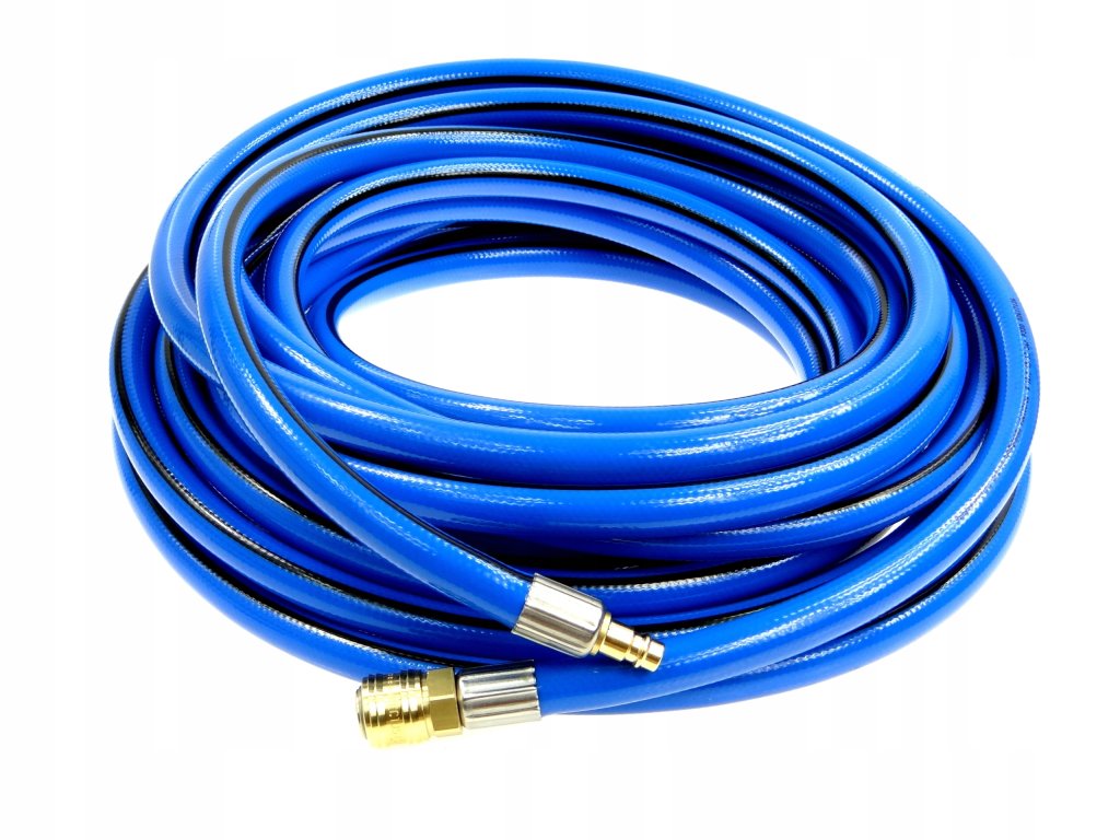 Profesjonalny wąż do sprężonego powietrza 3 warstwowy, okuty szybkozłączami firmy RECTUS typ 26 KA. Wyprodukowany z bardzo elastycznego PCV na bazie suspensyjnego polichlorku winylu, tereftalanu, kauczuku syntetycznego oraz innych komponentów poprawiających elastyczność w niskich temperaturach, dodatkowo wzmocnione obwojem tekstylnych. Stosowany do przepływu sprężonego powietrza jako osprzęt do kompresorów, ciśnieniowych urządzeń myjących i narzędzi pneumatycznych, środków ochrony roślin i lekkich chemikaliów pod ciśnieniem.Zachowuje dobrą elastyczność nawet w niskich temperaturach. Spełnia normy dyrektywy 2007/19/EC dla substancji w sekcjach A,B,C i UNI EN ISO 5774/2008.