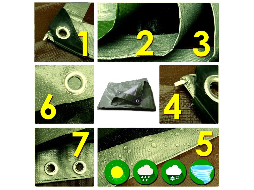 4. wgrzany w krawędzie sznur mocujący wzdłuż wszystkich krawędzi - wzmacnia i zapobiega rozdarciu,